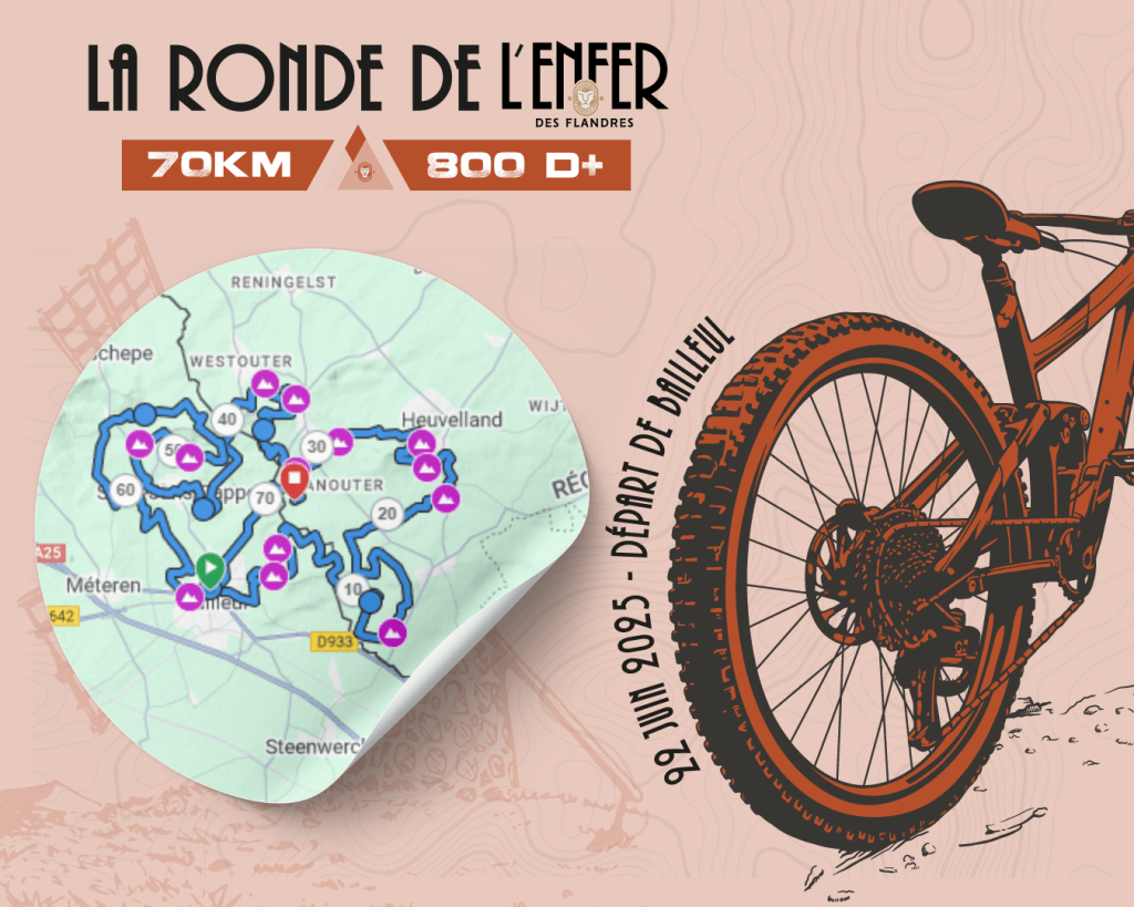 Pour les amateurs de chemins roulants et de sentiers bucoliques, la Ronde de l’Enfer offre un condensé de plaisir en 70 km. Du single track aux petits défis techniques, c’est une belle mise en jambes pour découvrir les Flandres autrement, entre nature et patrimoine. Et rassurez-vous, cet Enfer-là est surtout paradisiaque.